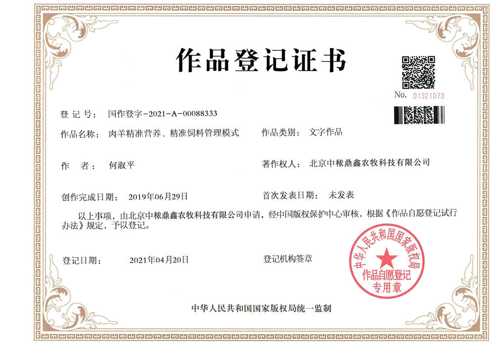 肉羊精準營養(yǎng)版權登記證書