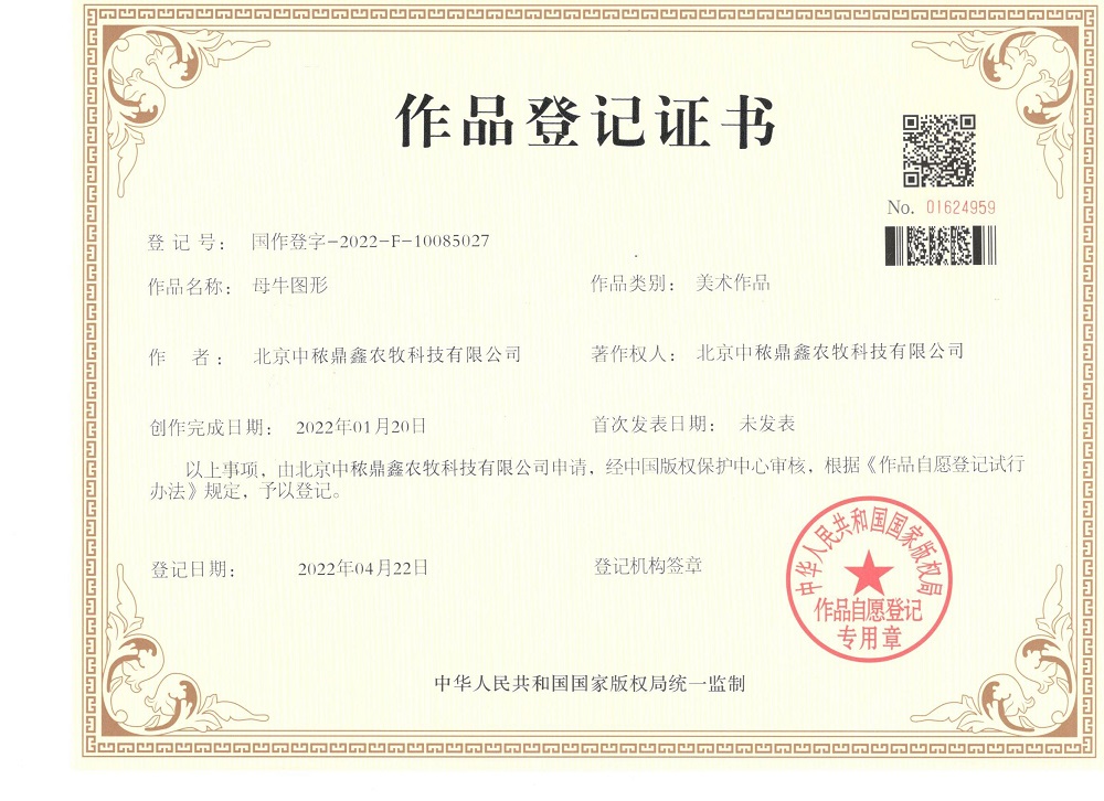 母牛圖形作品登記證書(shū)